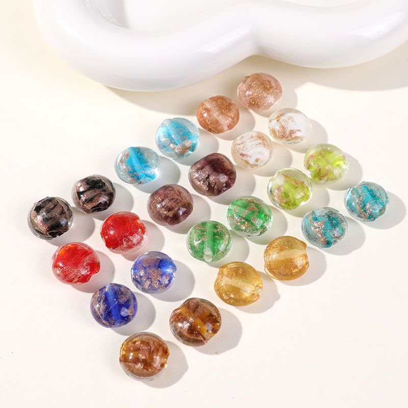 12mm平円形金粉純色ガラスビーズdiy瑠璃ビーズイヤリング髪飾りブレスレットアクセサリー材料卸売り