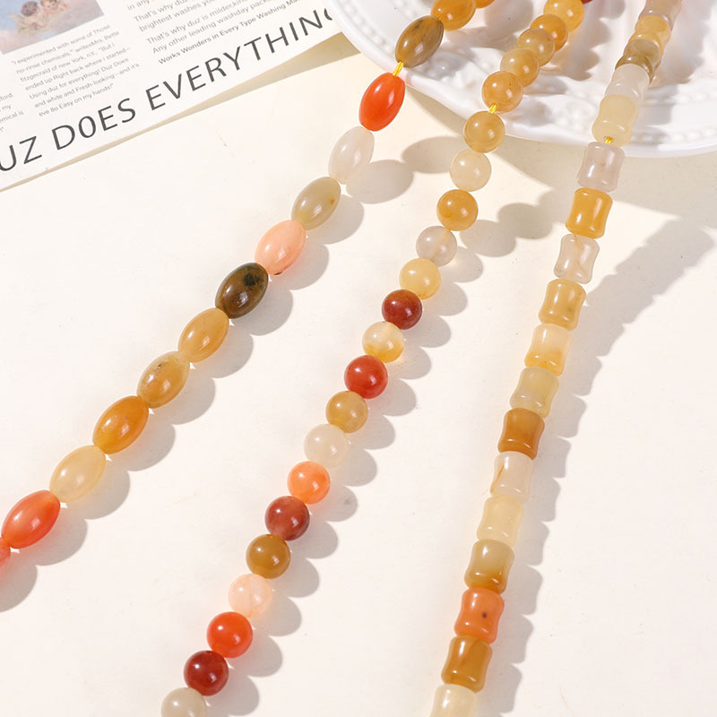 新中国式散珠天然金糸玉竹節玉diy手串ブレスレットネックレスビーズアクセサリー卸売り