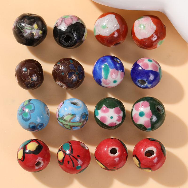 国風色絵花円形陶磁器ピアスビーズdiy手作りイヤリング髪飾りブレスレットビーズ材料卸売り