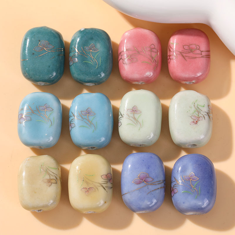 古風新商品カラー陶磁器印緑葉花ピアスビーズdiy手作りイヤリング髪飾りブレスレット材料卸売り