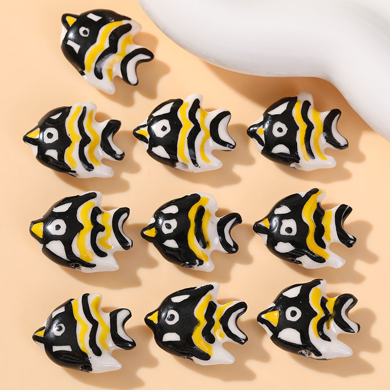Ins彩色陶磁器海洋熱帯小魚穿孔ビーズdiy手作りビーズイヤリング髪飾りブレスレット材料卸売り