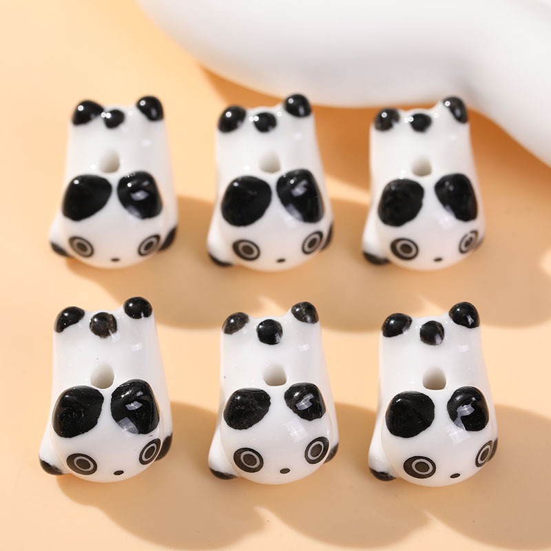 陶磁器の手描きのかわいい白黒のパンダのブレスレットのビーズの横の穴の散珠diyイヤリングの髪飾りのブレスレットの材料の卸売り