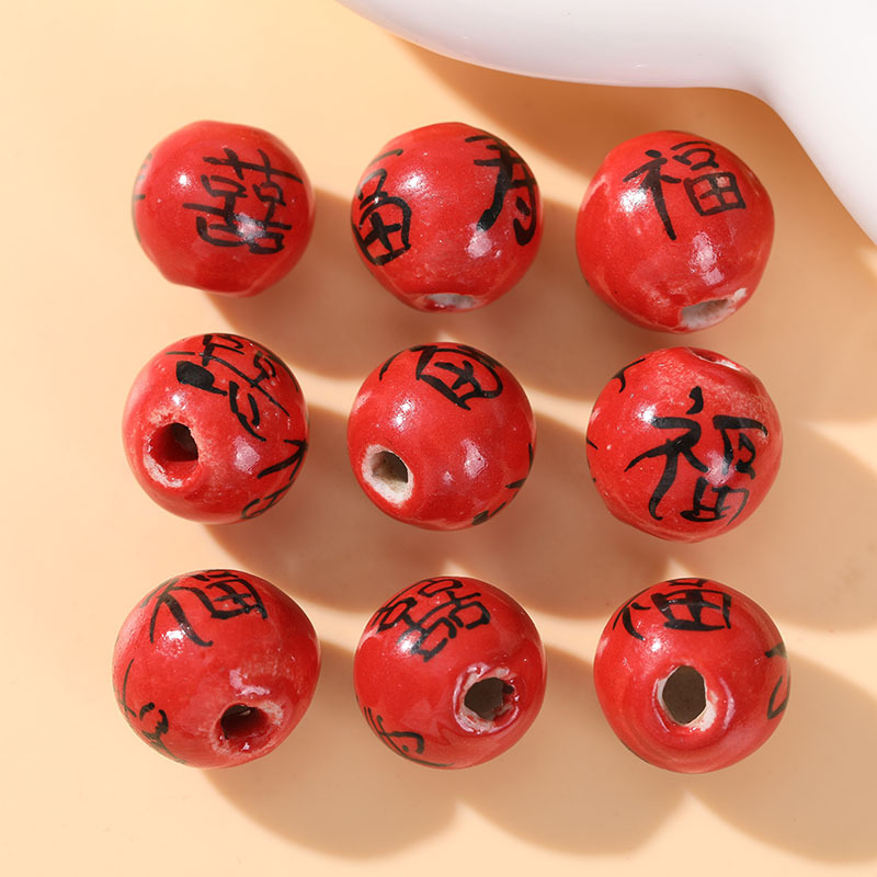 お祝いの赤い漢字喜福陶磁器の玉diyの手はビーズのイヤリングの髪飾りのブレスレットの装飾材料の卸売りをします。