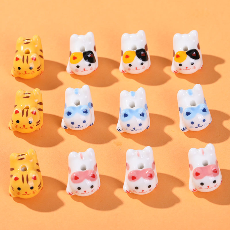 アニメかわいい立体吊り萌えカラー猫陶磁器串穴散珠diyブレスレットアクセサリー材料卸売り