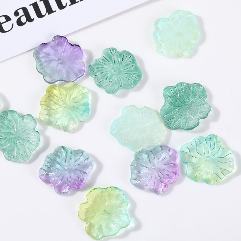 氷透ガラスシミュレーション立体二色グラデーション蓮の葉diyイヤリング髪飾りブレスレットアクセサリー材料卸売り