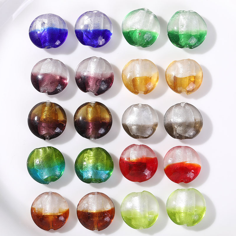 幾何学的なフラット円形の2色グラデーションピアスビーズdiy瑠璃ビーズイヤリング髪飾りブレスレットアクセサリー材料卸売り