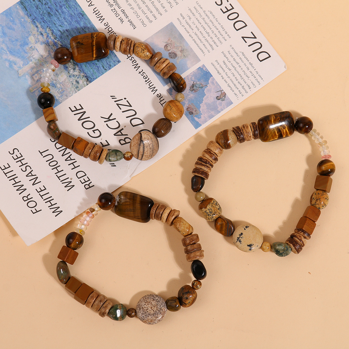 レトロな民族風の広野感天然の絵石虎眼石ココナッツの殻の手串diy中国式ブレスレットの卸売り