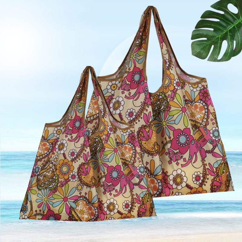 2個入り折り畳み携帯スーパーレジ袋防水エコバッグ手提げ袋野菜バッグ丈夫長持ち布ドライブ
