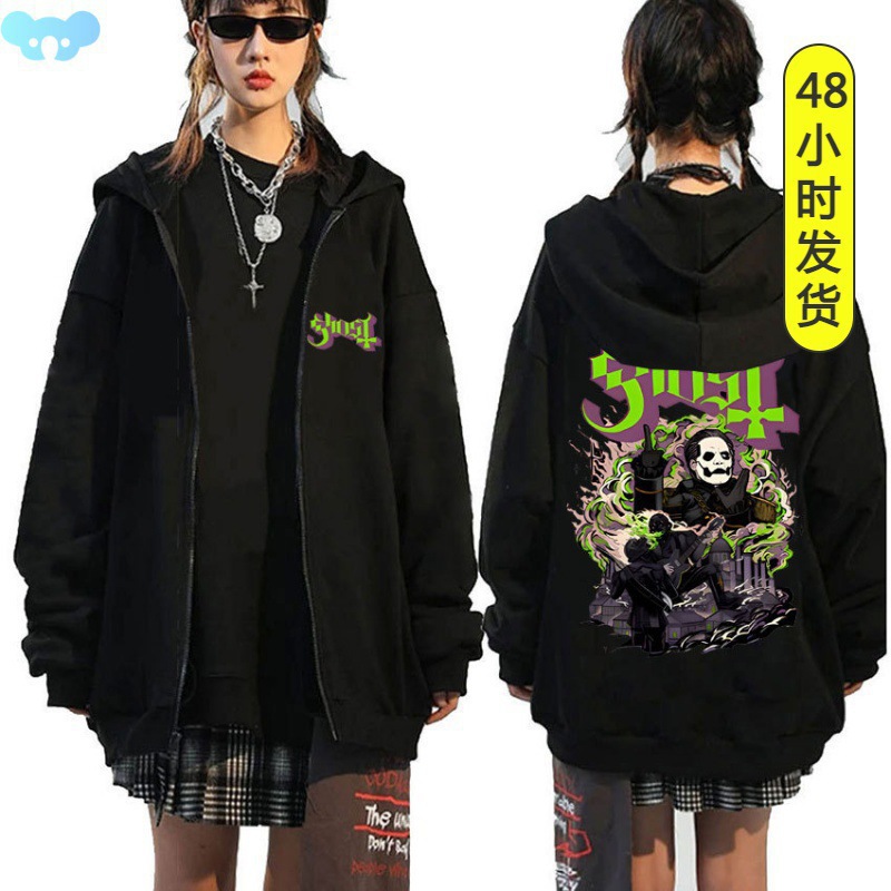 ゴーストバンドジッパーパーカーメンズヒップホップ特大ファッションカート