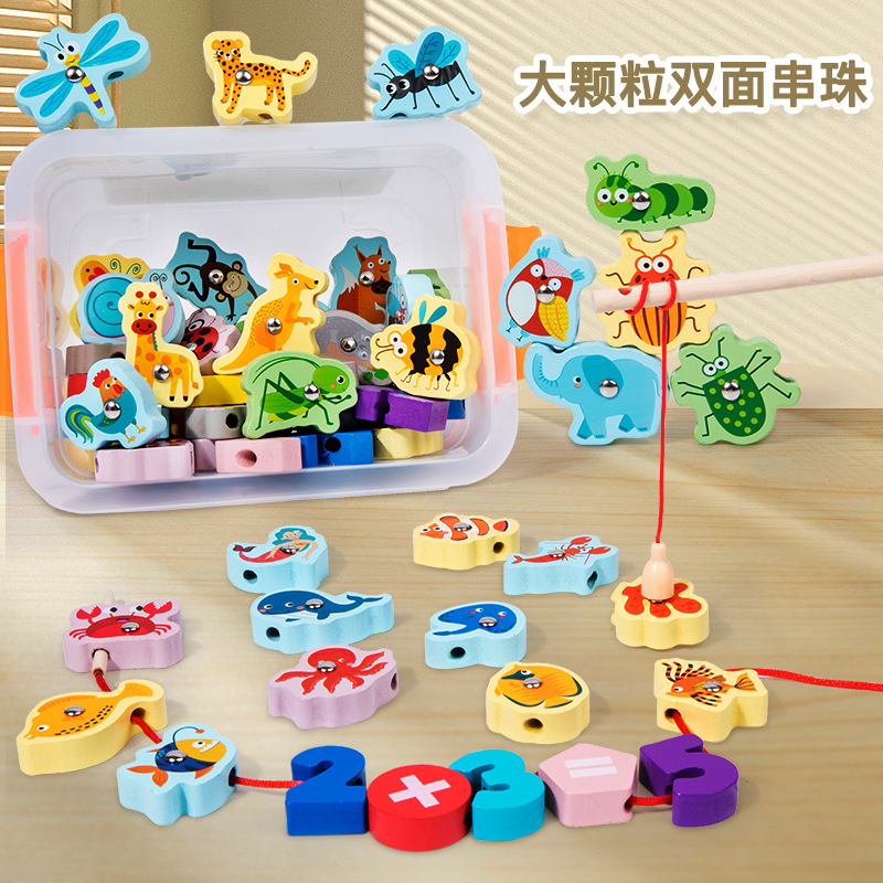 60粒の大きな粒の数珠の赤ちゃんの益智のおもちゃの1-3歳の赤ちゃんは珠を着て訓練して朝に積み木を教えることに集中します。