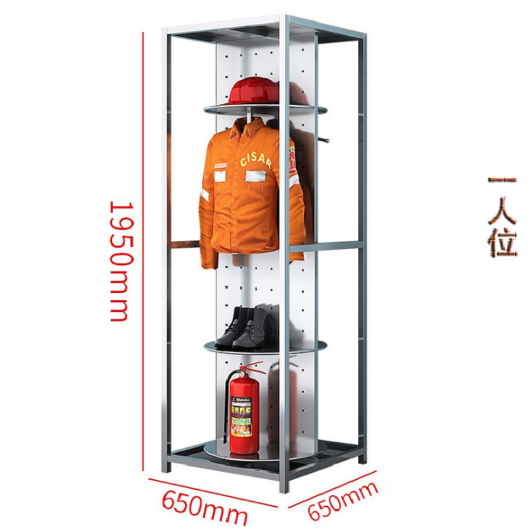 ステンレス消防戦闘服ハンガー360度回転服帽子装備棚防化救助服棚