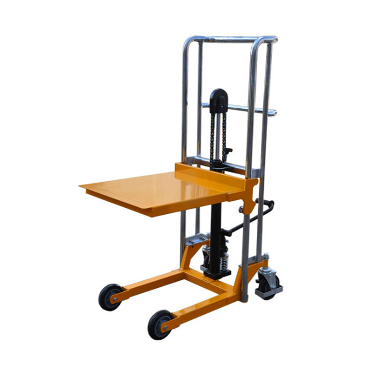 メーカーの手押し台車の足踏み式リフト車の手押し車は小さいプラットフォームの手動油圧リフト台車を運びます。