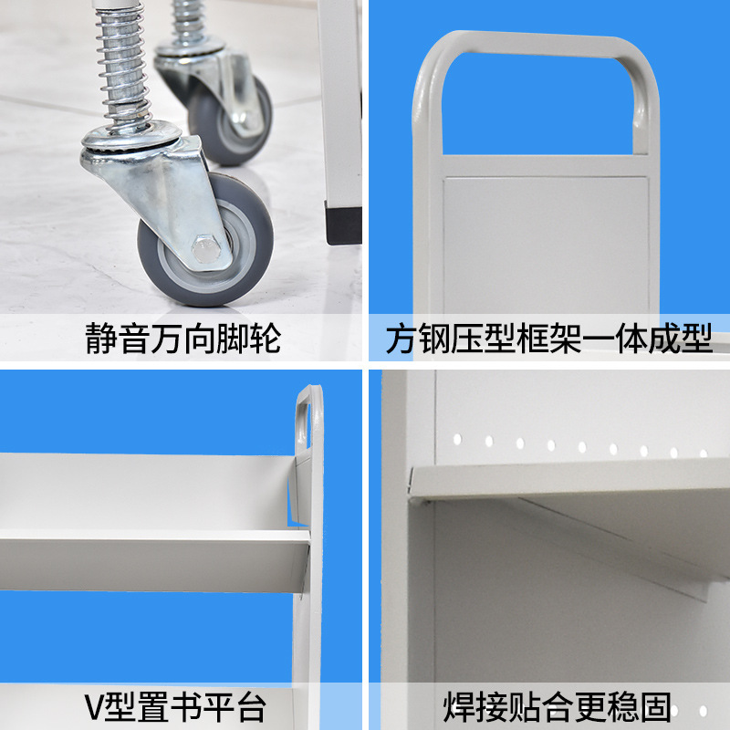 図書館書車移動静音ファイルオフィス資料書籍カート鋼製v型t型平板ブックはしご