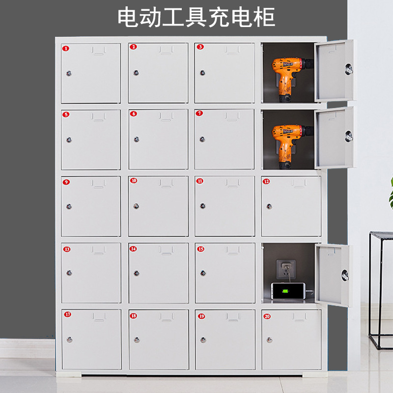 電動工具充電盤保管箱従業員物品保管棚ロック付き平板工事現場インターホン保管棚