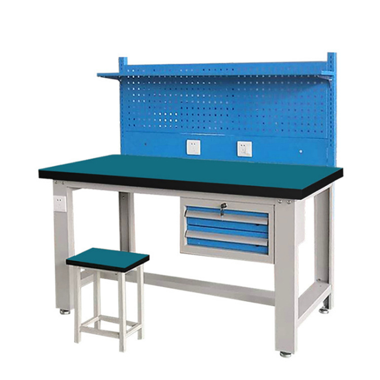 メーカーカスタム静電気防止作業台ランプ付き百葉角穴吊り板作業テーブル重三引き出し吊り棚作業台