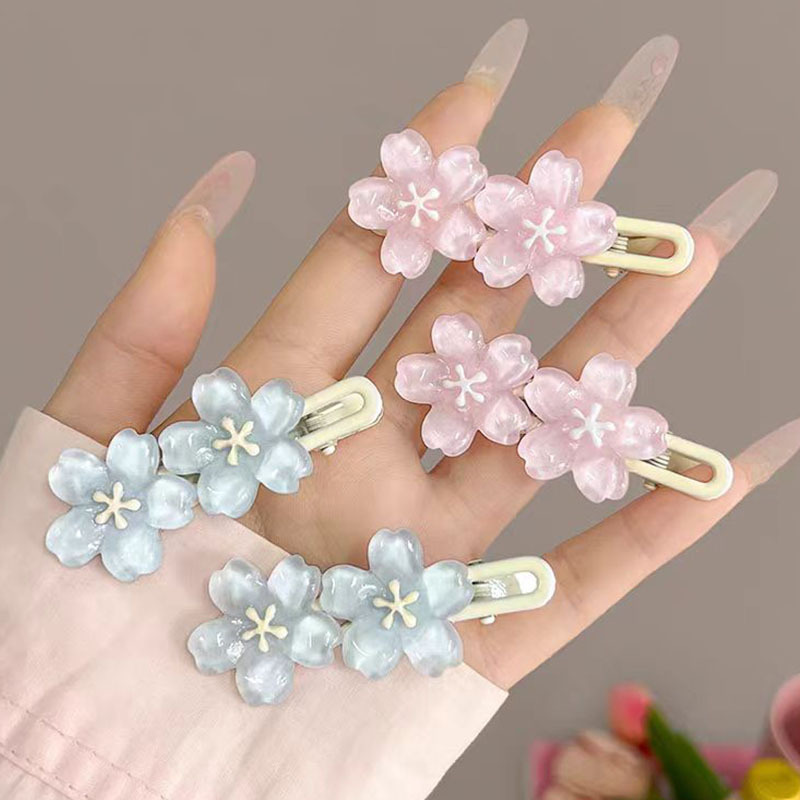 ゼリー色の超仙桜の髪は女性の額の側の前髪を挟みます。