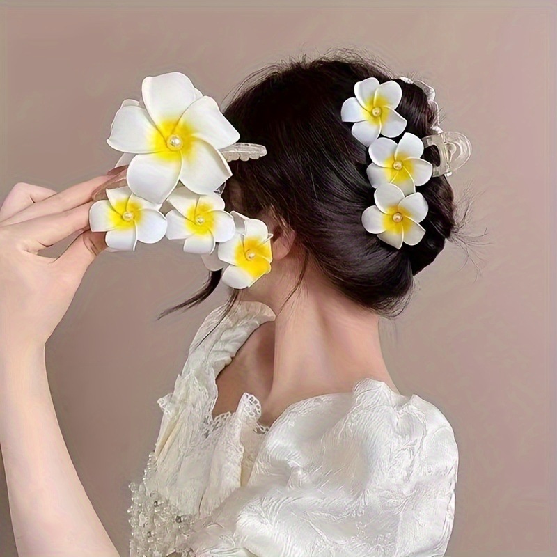 プルメリアヘアクリップ女性のための夏 2024 新しいグリッパーダイ族クリップインターネット有名人後頭部サメクリップ頭飾り