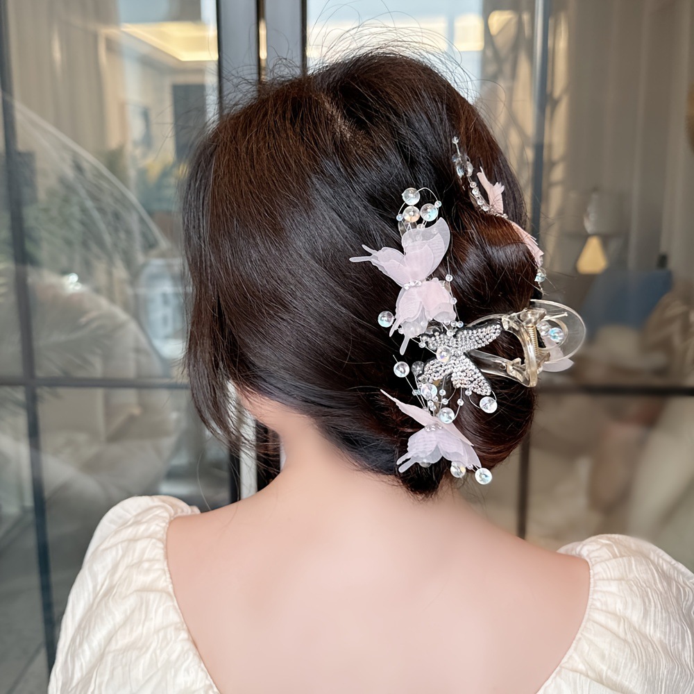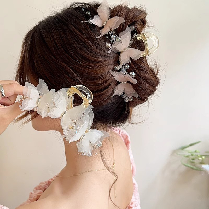 蝶のクリップの女性の大きいサイズの2024の新型の高級感の甘い髪のクリップの後頭部のクリップの頭はサメのクリップを飾ります。
