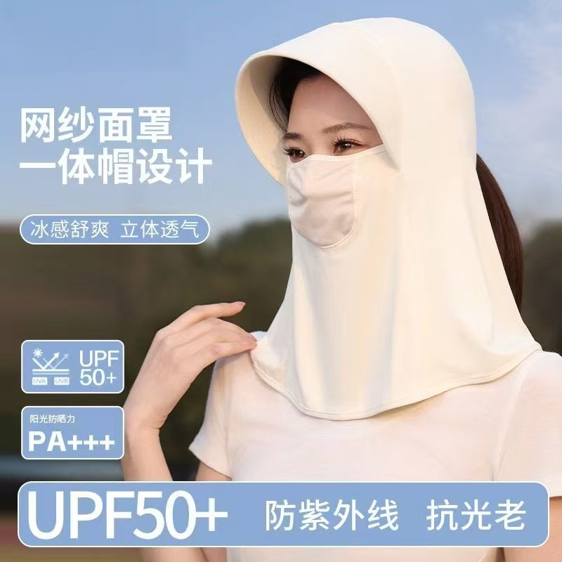 2025夏の新型女性高颜値氷糸ネット防錆マスク一体式首保護カバー