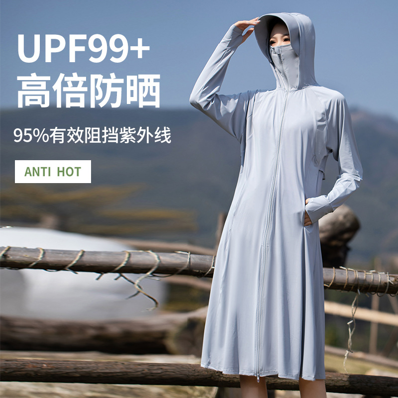 2024年夏の新型女性用日焼け止め服にロングタイプの氷糸通気性紫外線防止服が痩せて見える日焼け止め服