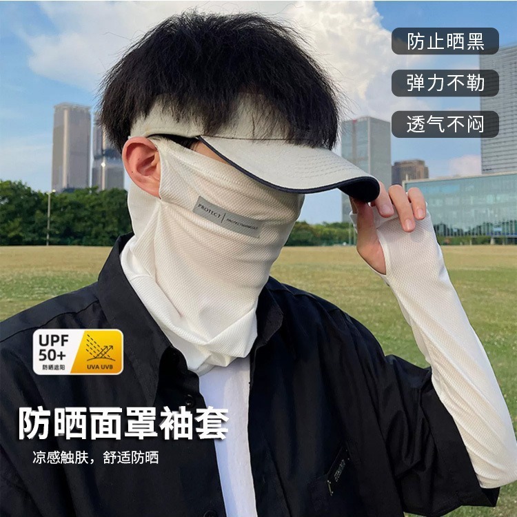 日焼け止め袖カバー夏の新型氷糸袖紫外線防止男性ゆったりと釣りに乗るマスクの首保護手袋
