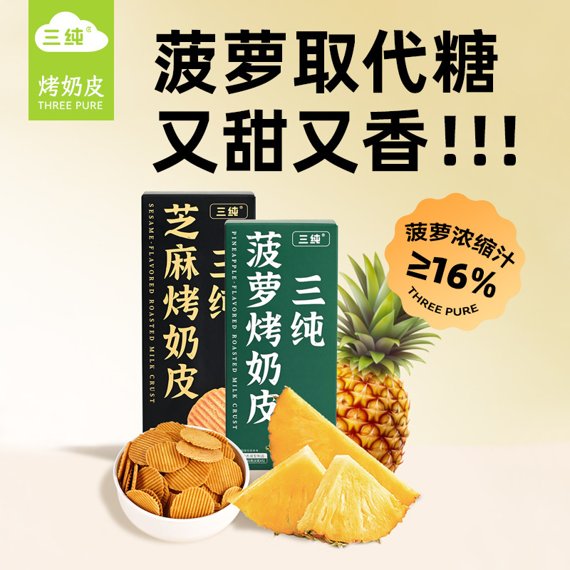 三純【パイナップル & ゴマ焼きミルクの皮】新しい味のパイナップルは砂糖の代わりに、サクサクしています。