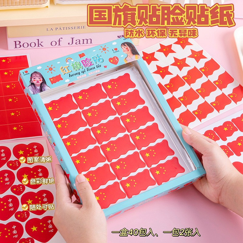 紅旗のステッカーの顔は愛の五星を貼って絵を貼って幼稚園の小学生の国慶節の雰囲気の国旗のステッカーの装飾を応援します。