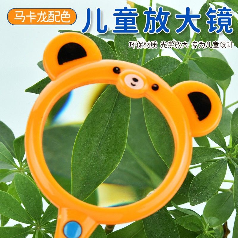 漫画の子供のルーペのおもちゃのキャンディー色の熊のルーペは学習用品の科学の実験を持って探求します。