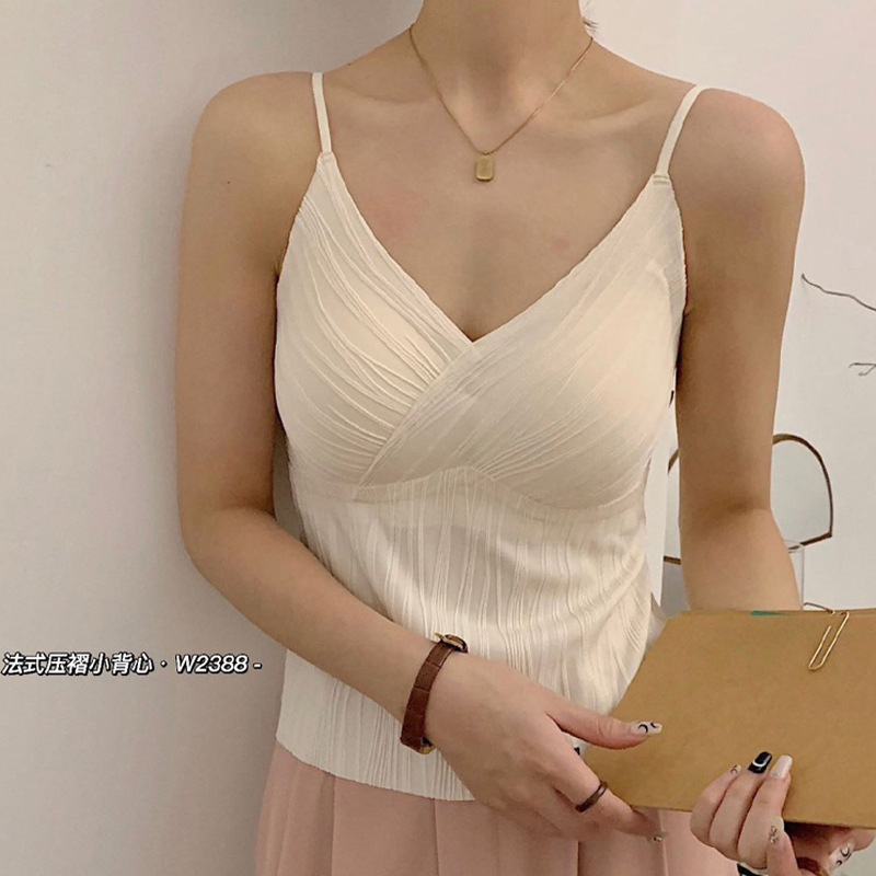 胸パッド付きの新しいフレンチウォーターリップルサスペンダー、外側と内側にオールインワンの美しいバックブラ、ボトム下着、プリーツベスト