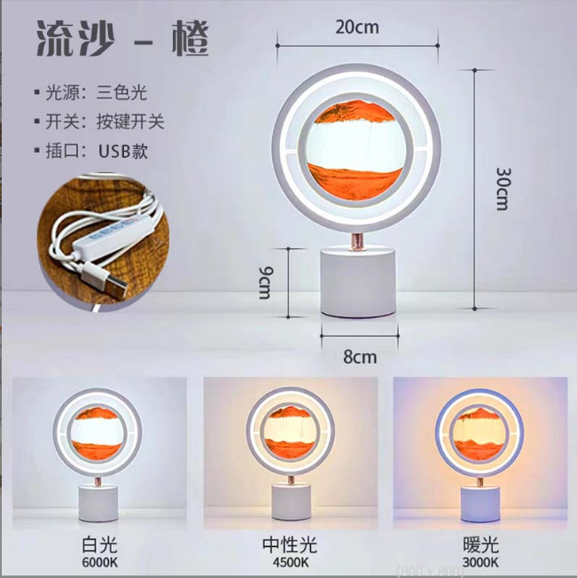 Usb流砂画電気スタンド砂時計置物国風山水創意ベッドスタンドシンプル装飾流砂電気スタンド