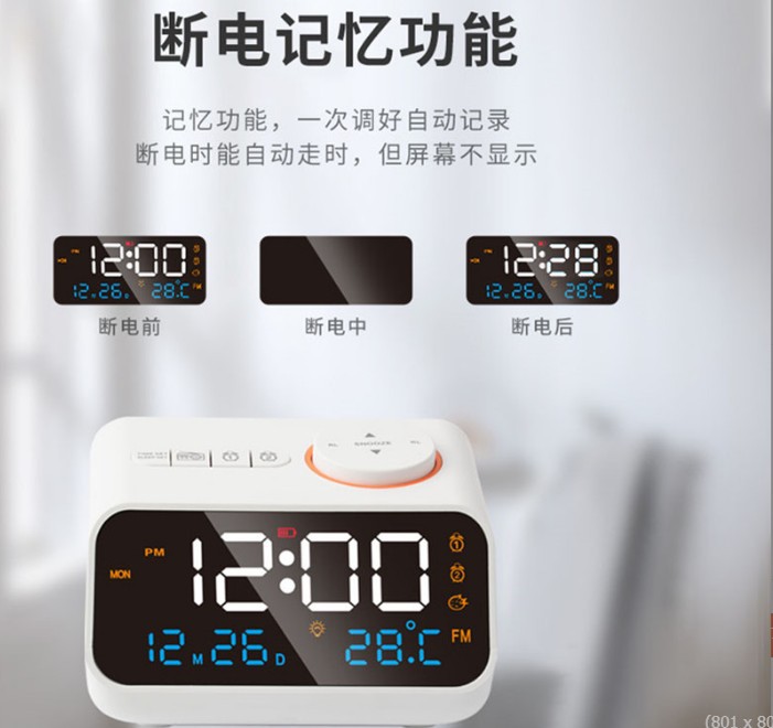 多機能led充電クロックラジオ時計音楽アラームfmラジオ目覚まし時計回転チャンネル