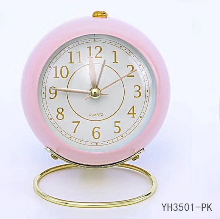凸ガラス円環台座の金属置き時計のベッドの上の目覚まし時計の新型石英時計は静かに夜の明かりを持っています。