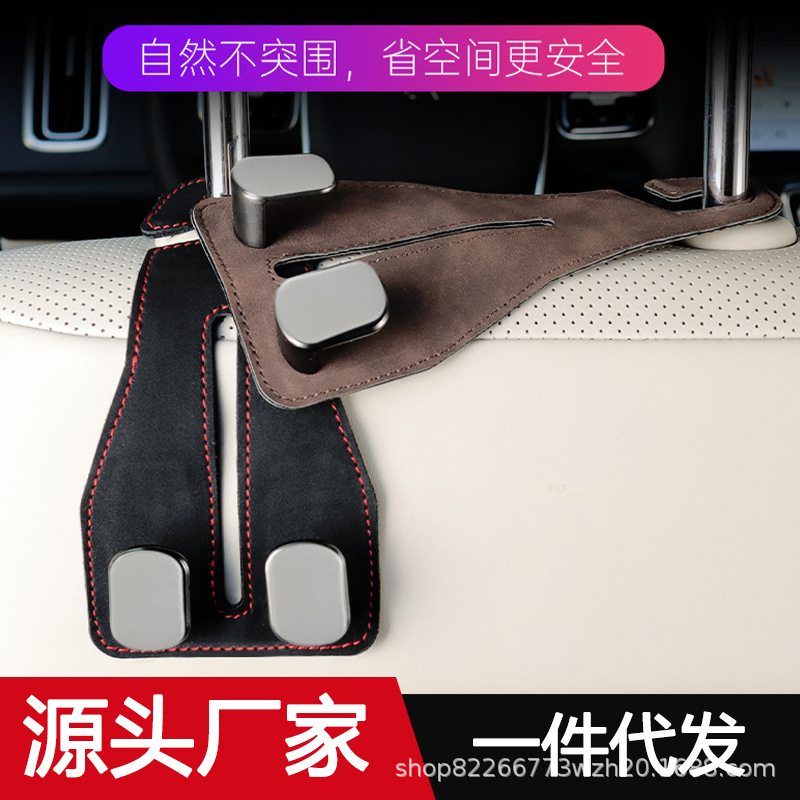 車の上で毛皮をひっくり返してフックします。車のシートの後ろに隠れた多機能の置物が収納されています。革のフックは通用します。