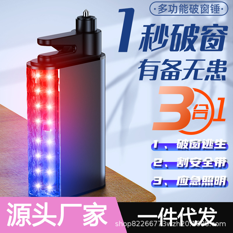 自動車多機能安全ハンマーガラス破窓ハンマーu型カッター秒割安全ベルト緊急照明脱出神器