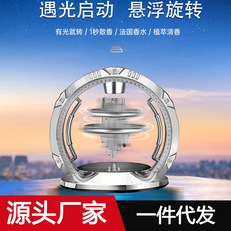 車の宇宙の城の太陽エネルギーのアロマの金属の電気めっきの中でコンソール式の雰囲気の置物は光に出会って回転して香を散らします。