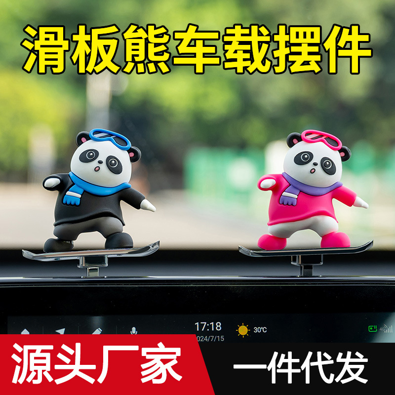 車の立体漫画のパンダの置物のスケートボードの熊は車と一緒に滑って浮遊します。