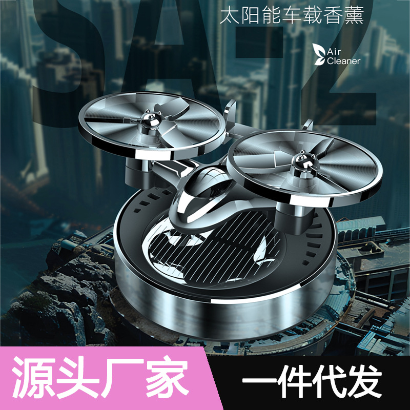 車載ソーラーアロマディフューザー、回転式香り拡散器、ダブルターボ装飾品、アルミ合金製、光に反応して回転する浮遊式香水