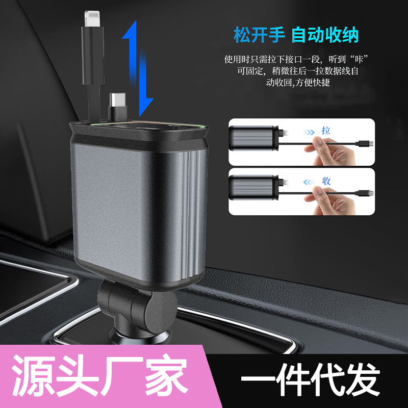 国境を越えた車載充電器の超急速充電伸縮線は、4つの自動車の星の上の雰囲気ランプのシガレットプラグを引っ張る