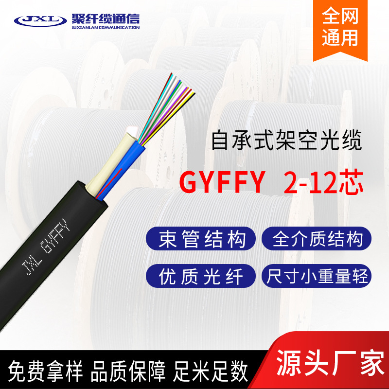ポリファイバーケーブルgyffy自承式架空光ケーブル屋外非金属光ファイバー4芯6芯8芯12芯光ケーブルメーカー