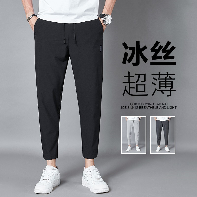 氷糸ズボン男性夏の薄手速乾通気カジュアルパンツ男性用ゆるいスポーツパンツ足エアコンズボン