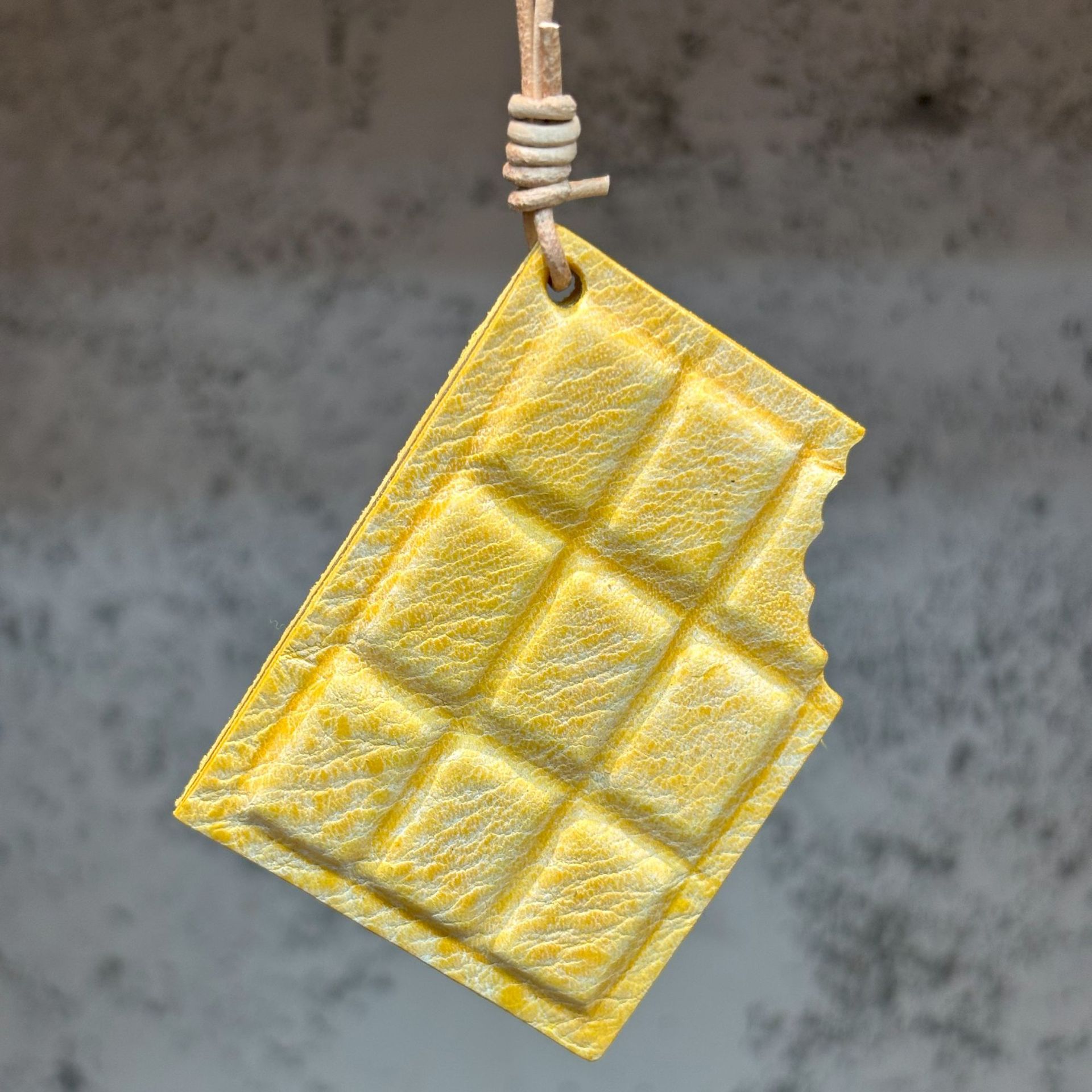 手作りの革製品、パーソナライズされたファッション、植物タンニンなめし牛革チーズチョコレートバッグペンダント、レディースバッグ、本革ペンダント、カーアクセサリー