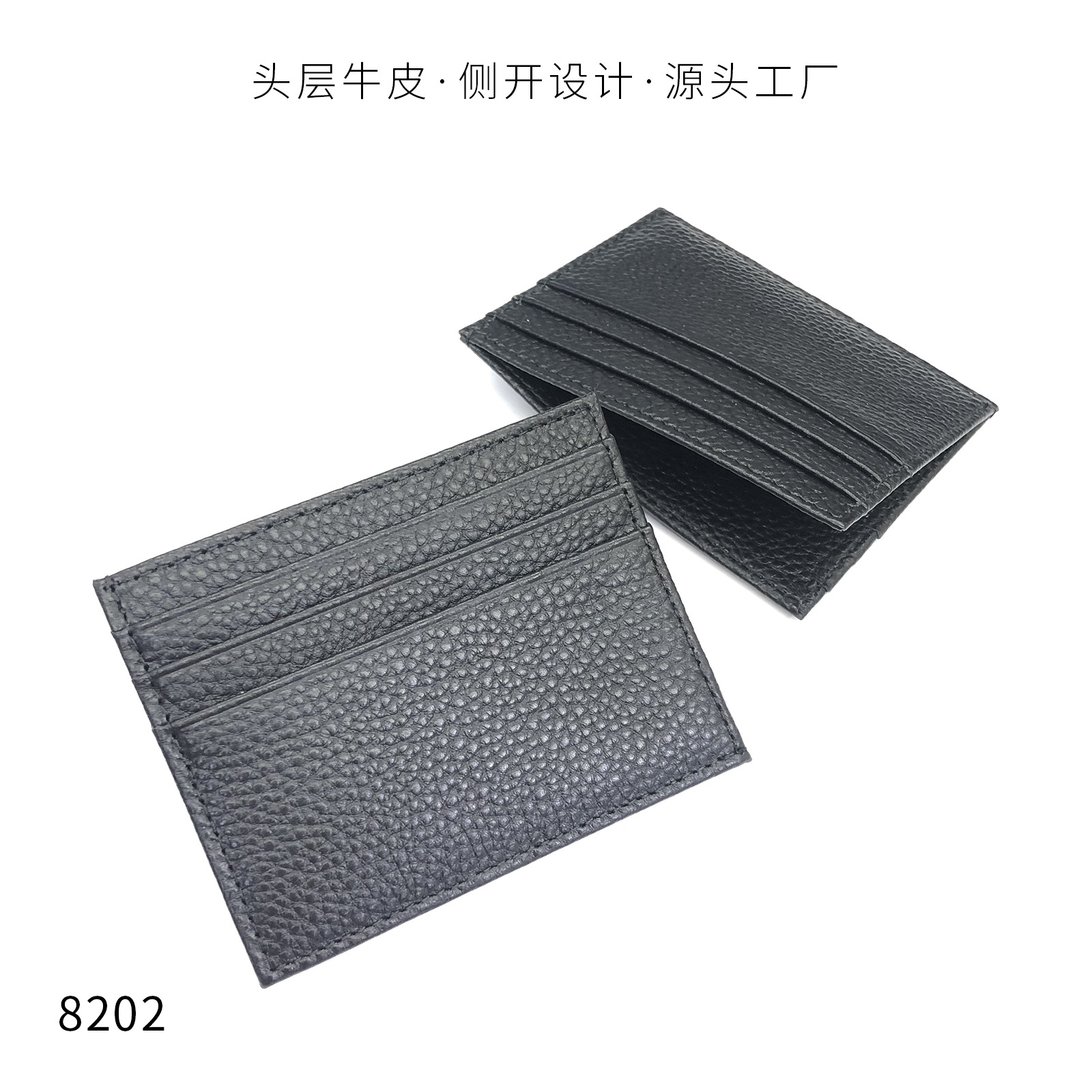 輸出用本革片面横型小型カードホルダー、第一層牛革、ライチ柄、3カードスロット、小型カードホルダー、ミニカードバッグホルダー