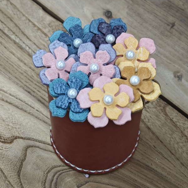 純粋に手作りされた本革の女性の軽い高級フラワーヘアロープ弾性ヘアフープハイエンド植物タンニンなめし牛革高弾性ヘアロープ
