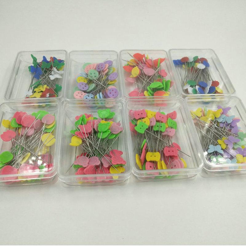 メーカー卸売りカラープラスチック漫画ピン平頭位置決め針50枚/100枚箱入りピン