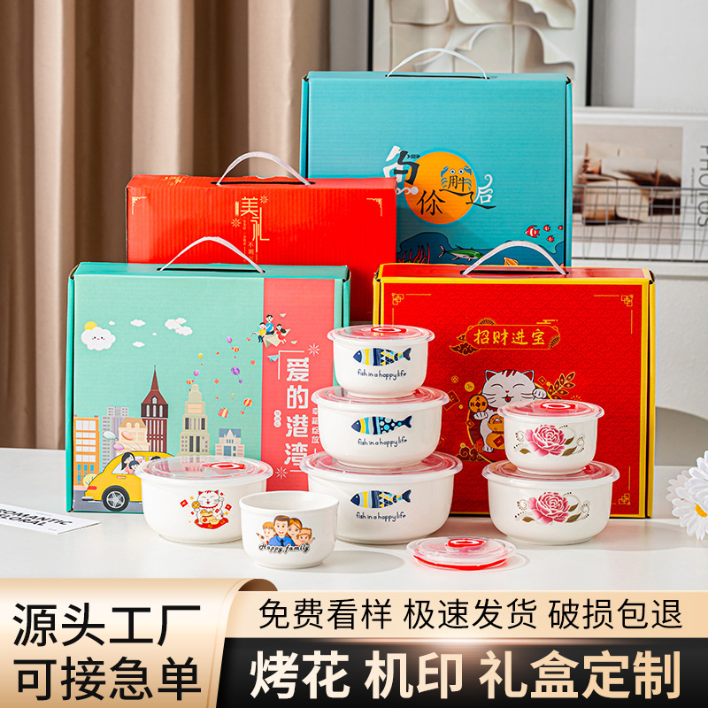 陶磁器の鮮度保持碗の三点セットのギフトボックス会社の年会団の建設活動の実用的なお土産のアイデアのギフトボックスのセット
