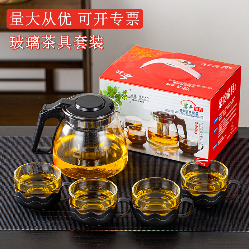 ティーポット耐熱ガラスティーポットセット5点セットティーカップ茶器印字小プレゼント高級贅沢プレゼント