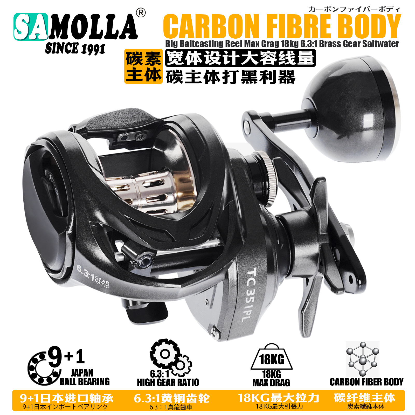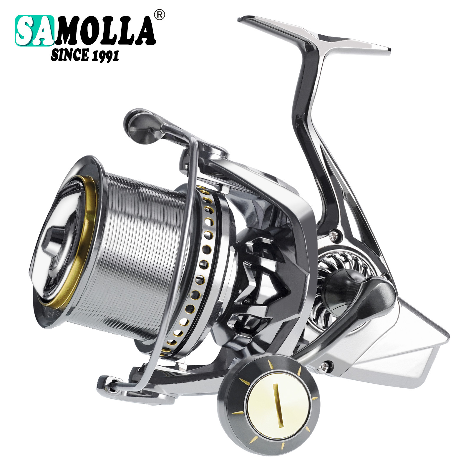 Samolla新型超大型ワイドボディ海釣り水滴輪防海船釣り金属ベース黒魚