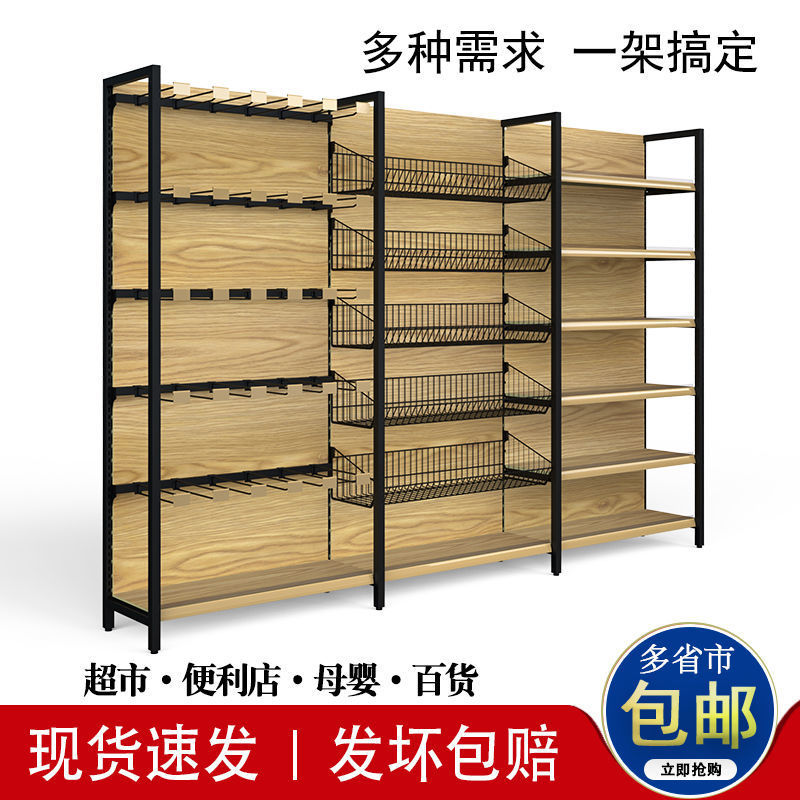 【9486人収纳】多机能転写プリント木目スーパーラックフック挂けカゴ自由组みコンビニ本体