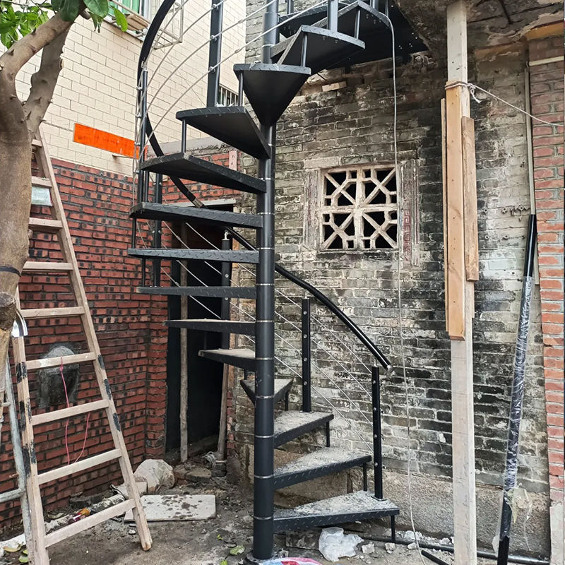 屋外の回転階段の円形の厚い鉄の芸の中柱の防滑板の屋根裏の2階の室内外の屋外の階段d製