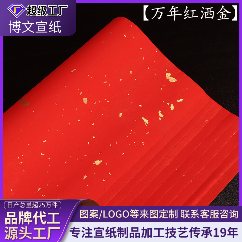 ワックス染め万年紅宣紙対聯手書き空白書道宣紙春聯紙旧正月紅紙書道福字卸売り